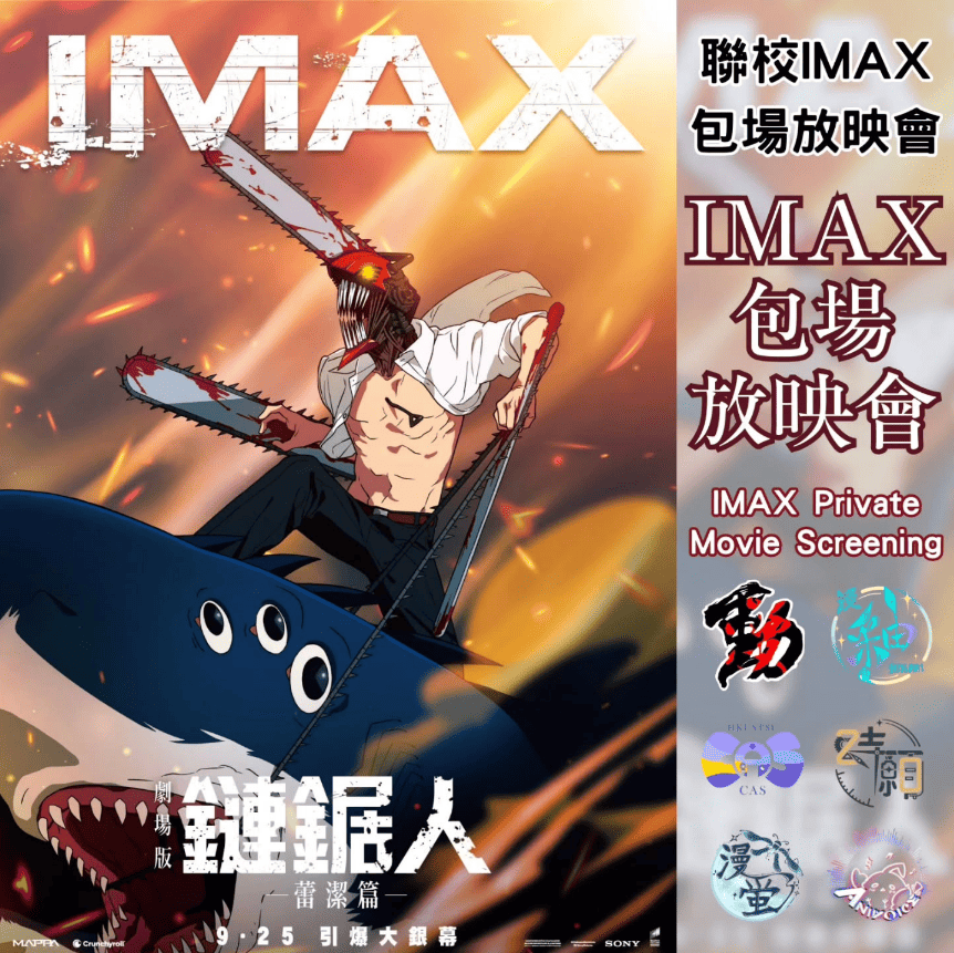 距離《鏈鋸人》第一季完結已經過咗將近三年⏳,今次電影將直入第一部最高潮——蕾潔篇🔥!六間大學動漫社(@acahku 、@polyusao_cas 、@hkustsucas 、@hkbuaca 、@anivoice_eduhk 、@lingu.acg )聯手為你帶來聯校 IMAX 包場放映會🎬🍿,附送包場獨家 IMAX poster!