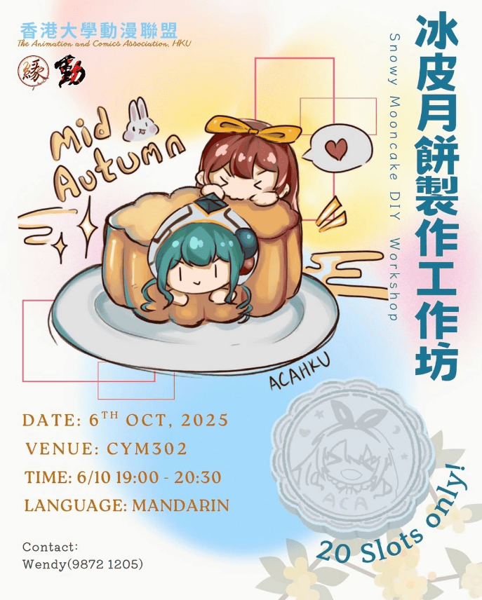 ❗已招滿❗ 中秋節快到,ACA為家人們準備咗冰皮月餅DIY工作坊!🎑 月餅唔夠食?嫌外面買太貴?想捏出動漫角色造型?嚟呢度親手整月餅啦!